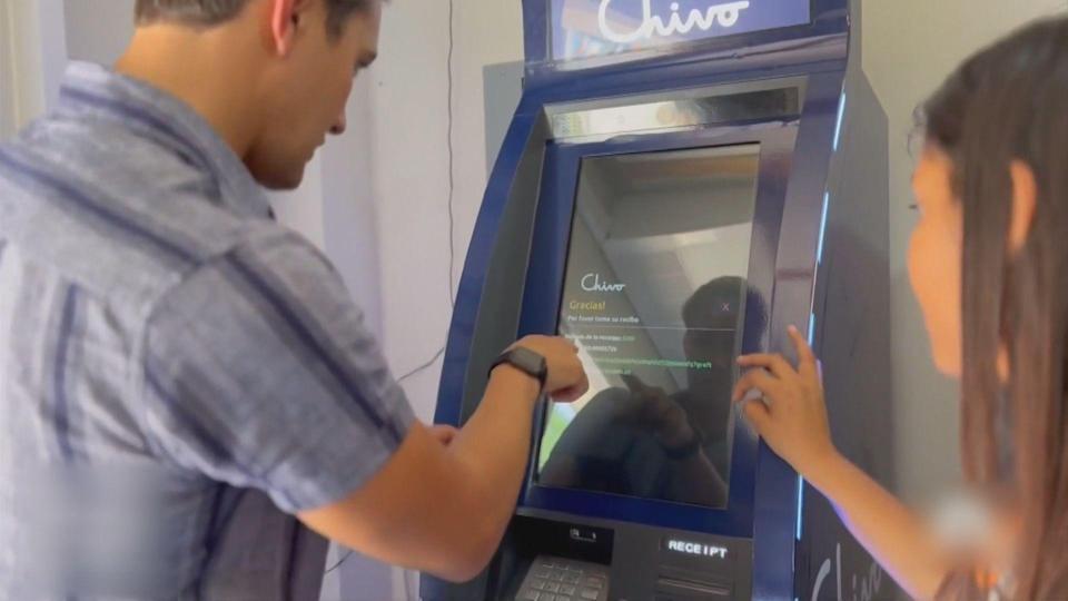 如今在萨尔瓦多街头到处可以看到这种比特币的提款机,可以将美金纸钞直接兑换成比特币,兑换后的比特币金额会显示在手机裡的比特币电子钱包,但实际到超市的柜檯结帐时,却整整卡关了10分钟。