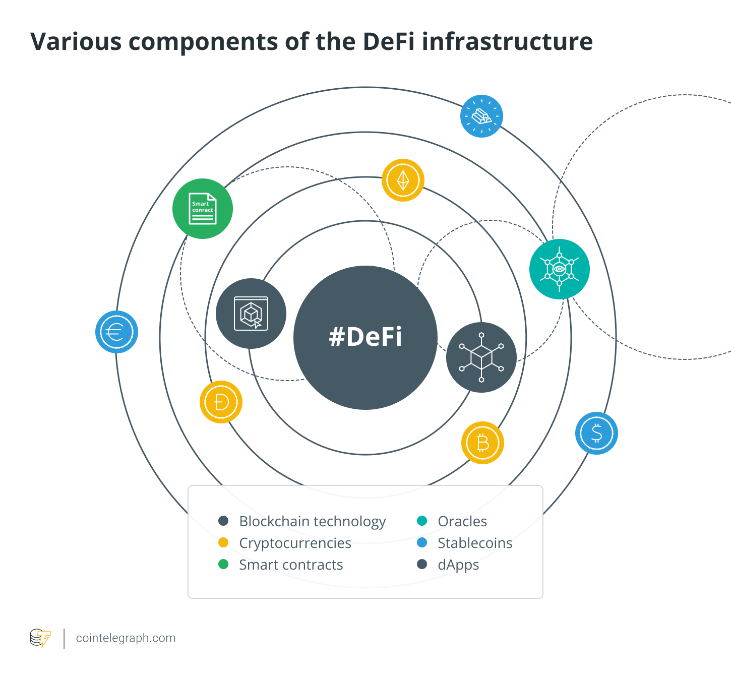 然后,在我们的地下室,我们有我们的墙,这是各自的协议,也被称为去中心化的应用程序,或DApps,作为去中心化的交易所(DEX)提供他们的服务,如Curve或Uniswap,或者作为贷款协议,Aave或Maker,或者作为衍生品流动性协议,如Synthetix等。这是一个不断成长和发展的空间。