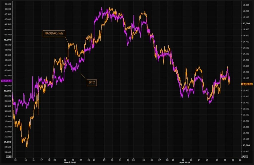 通过查看过去几个月 BTC 和纳斯达克的高度相关价格走势,可以找到这方面的证据。
