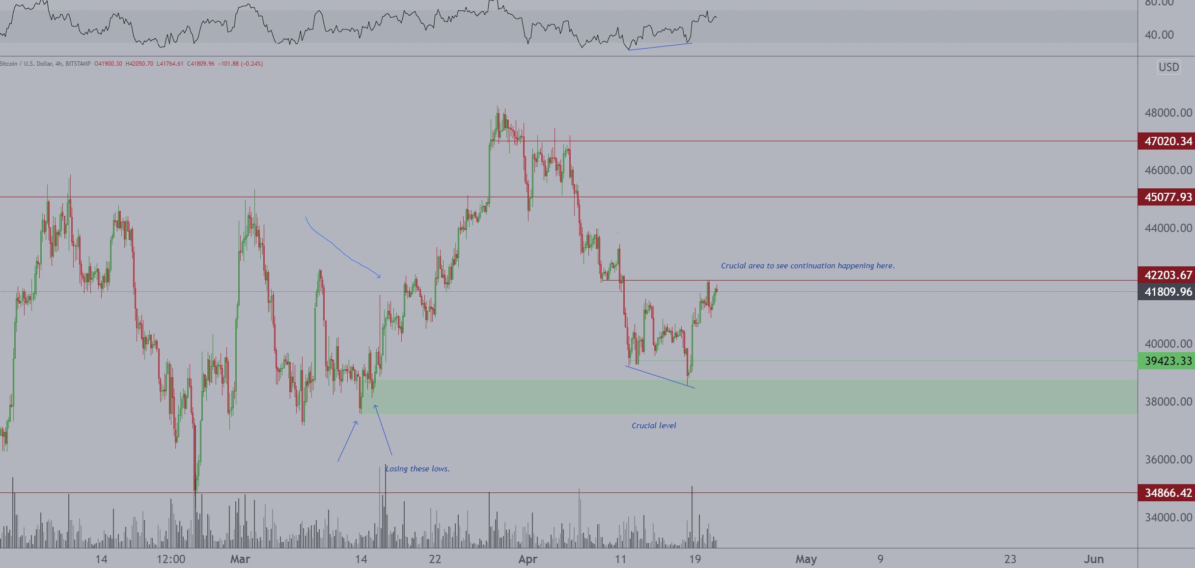 根据独立市场分析师 Michaël van de Poppe 的说法,42,300 美元是需要克服的关键水平。