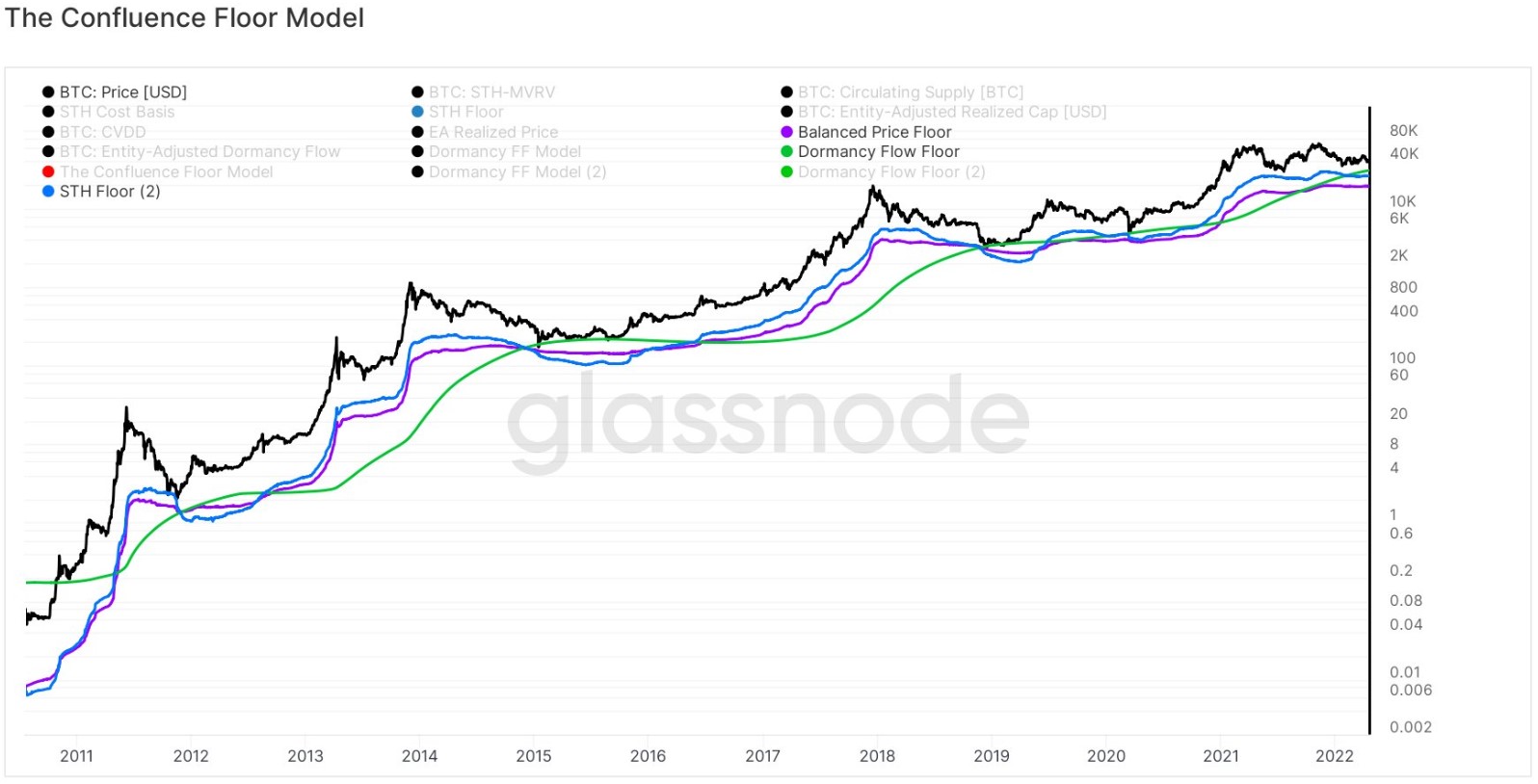 “蓝线和紫线在绿线以下的前4次,比特币已经触底了。”