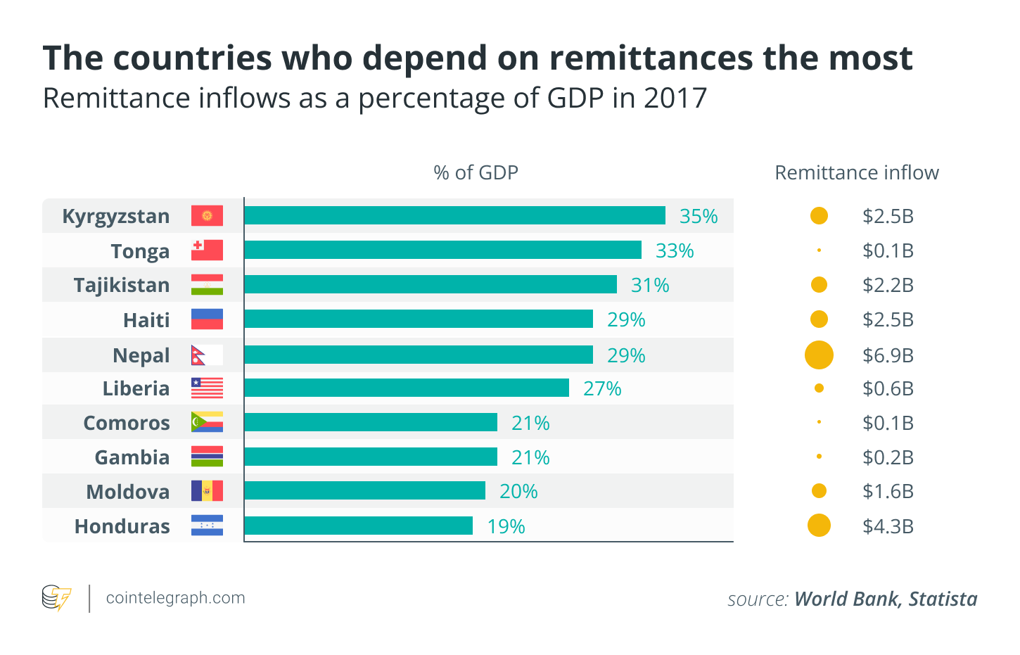 每年有数千亿美元寄回家。这远远超过官方发展援助。大多数汇款流向低收入和中等收入国家。在吉尔吉斯斯坦、尼泊尔和利比里亚,汇款占国内生产总值的四分之一以上。根据联合国教科文组织《2019年全球教育监测报告》,汇款平均成本为7%。此外,传统的银行收取汇款人最多的手续费。他们的平均费用是10%!大银行垄断汇款,从汇款中攫取利润。为了服务于得不到充分金融服务的人,世界需要的不是银行、决策者或非政府组织,而是DeFi。
