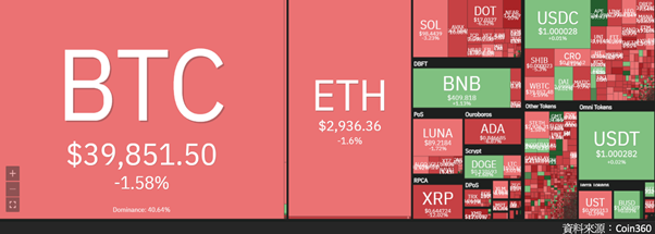 从加密货币价格热图来观察加密货币一周趋势,观察到本周除了少数币种如狗狗币,因特斯拉创办人马斯克收购推特而大涨之外,加密货币还是受到 FED 升息、美股崩盘的影响而全面走低。
