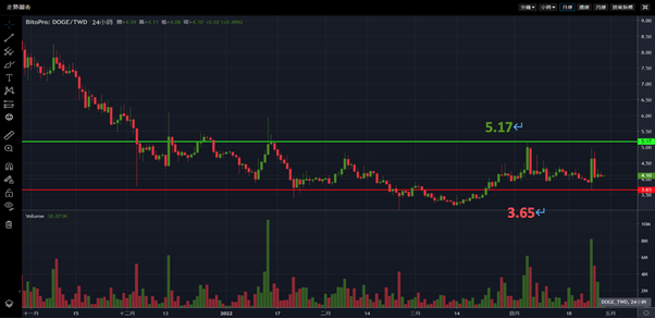 当多数加密货币因升息的压力而在区间震盪时,APE 在本周暴涨了超过 60%,其交易量相较于前段时间也是成长许多。从 APE 的 4 小时缐图上可以看到典型的上升趋势,目前价格进行回调,若没有跌破上升趋势缐将有望继续走升。
