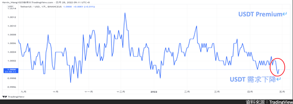 综合上述两点推断,市场筹码由 Altcoin (山寨币)转向比特币,甚至是转向传统金融市场,导致 USDT 需求降低,市场不热络。