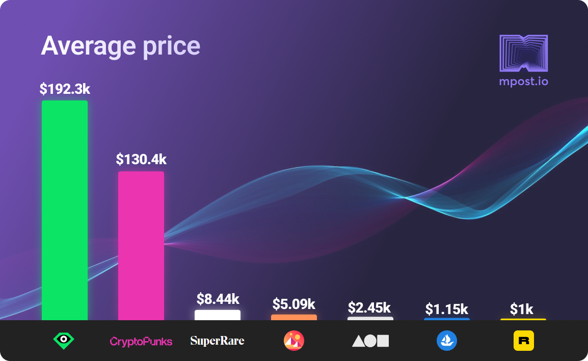 Rarible上的平均NFT价格最低,并且平均每位交易者的交易额也是最低。其中一个原因是,到2021-2022年底,NFT的市场份额大幅下降,当时交易实际上达到峰值,NFT的交易价格不断上涨。Rarible的大部分销售发生在2021年上半年,当时NFT的平均价格明显较低。