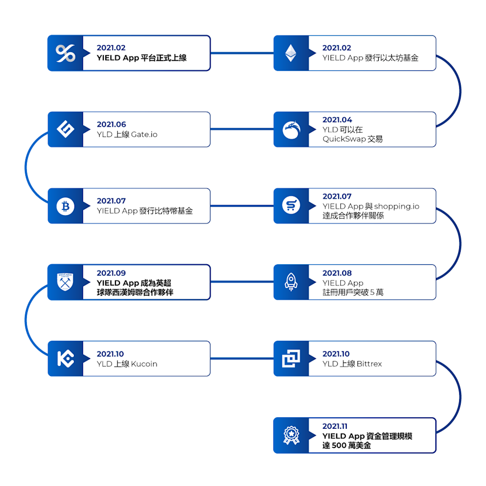 在 2022 年 2 月,Yield App 成立了一周年。为了庆祝第一个生日,我们在社群媒体上𫔭啟一个活动,以时间轴的形式介绍了 Yield App 推出后第一年的里程碑事件,包含达到 75,000 名用户和达到 5 亿美元管理资产。在这次活动中,我们亦在社群媒体和周报上分享了 Yield App 推出后第一年的事件时间轴。
