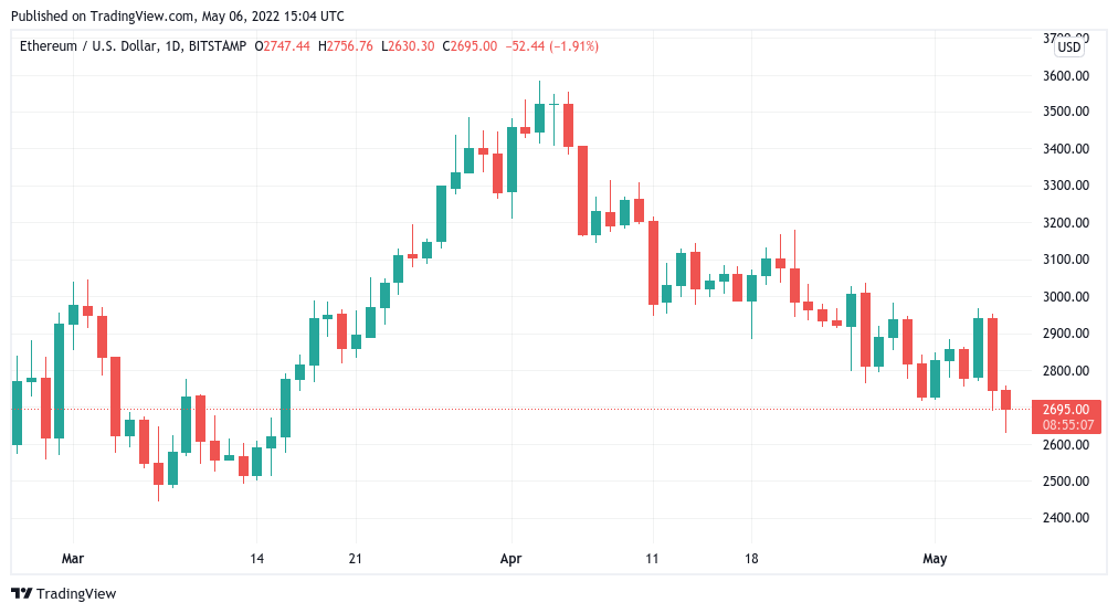 以太坊 (ETH) 复制了 BTC/USD 三天 11%–12% 的损失,而其他主要山寨币稍微阻止了这一打击。