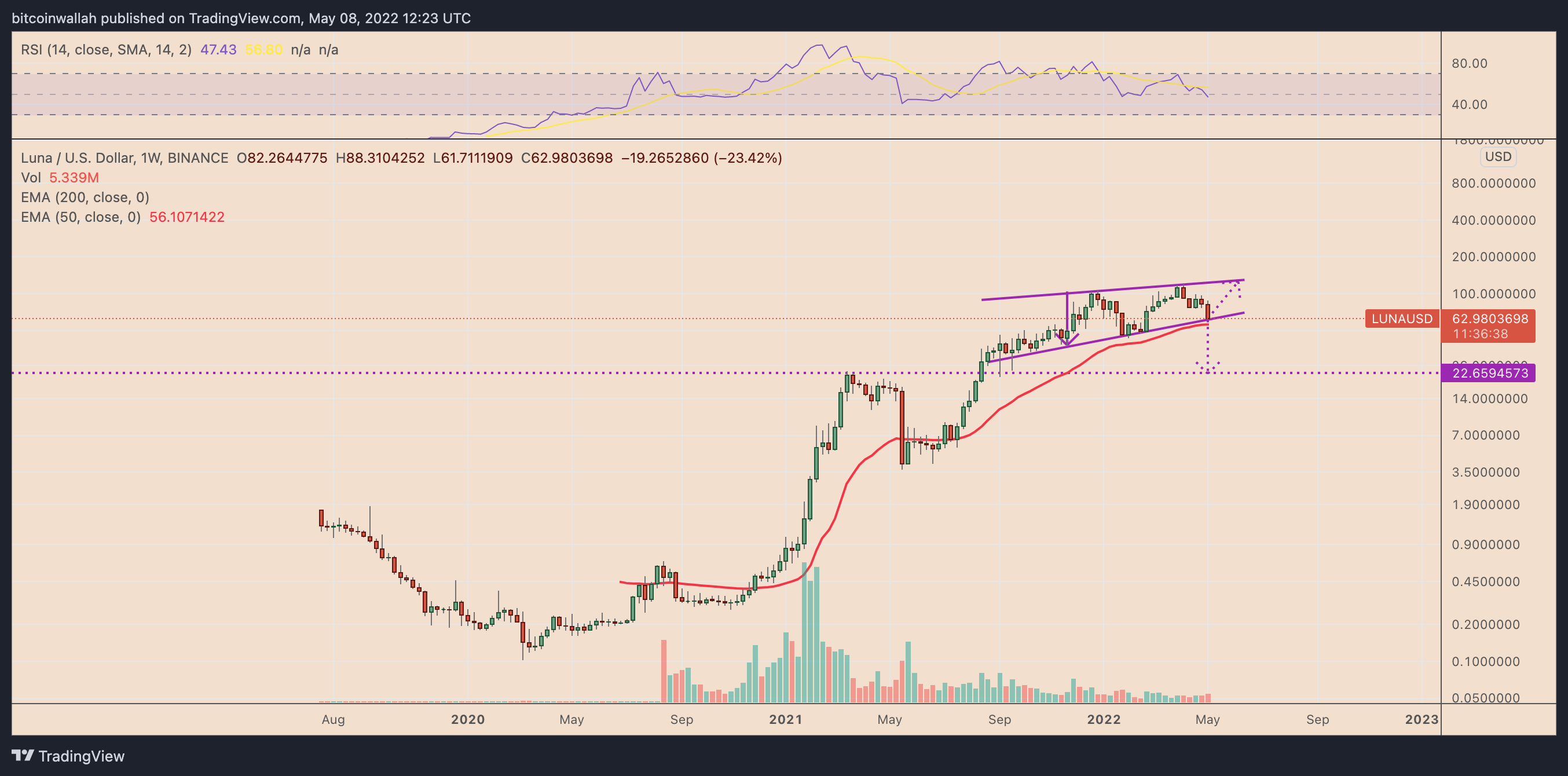 具有“上升楔形”走势的 LUNA/USD 每周价格图表 来源:TradingView