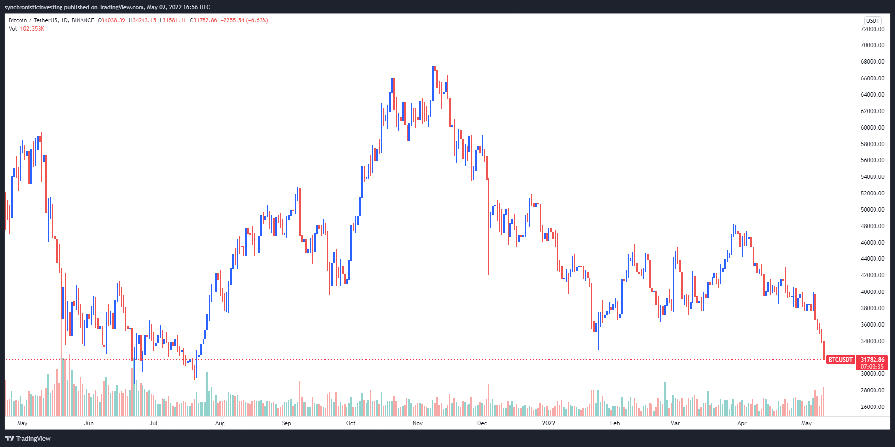 “当它下雨时,就倾盆而下(祸不单行)”是一句老话,5月9日在加密货币市场找到了新的相关性,交易员们面临着又一天的痛苦,当前的价格下跌将比特币(BTC)带到2022年的最低水平。