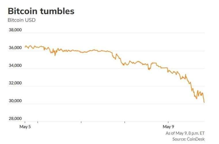 比特币在周二亚洲盘时段跌破 3 万美元,24 小时内跌幅达到 11.99%,周一盘中最低跌到 30869 美元。若和去年 11 月的 68990 美元历史高点相比,比特币迄今已跌逾 50%。