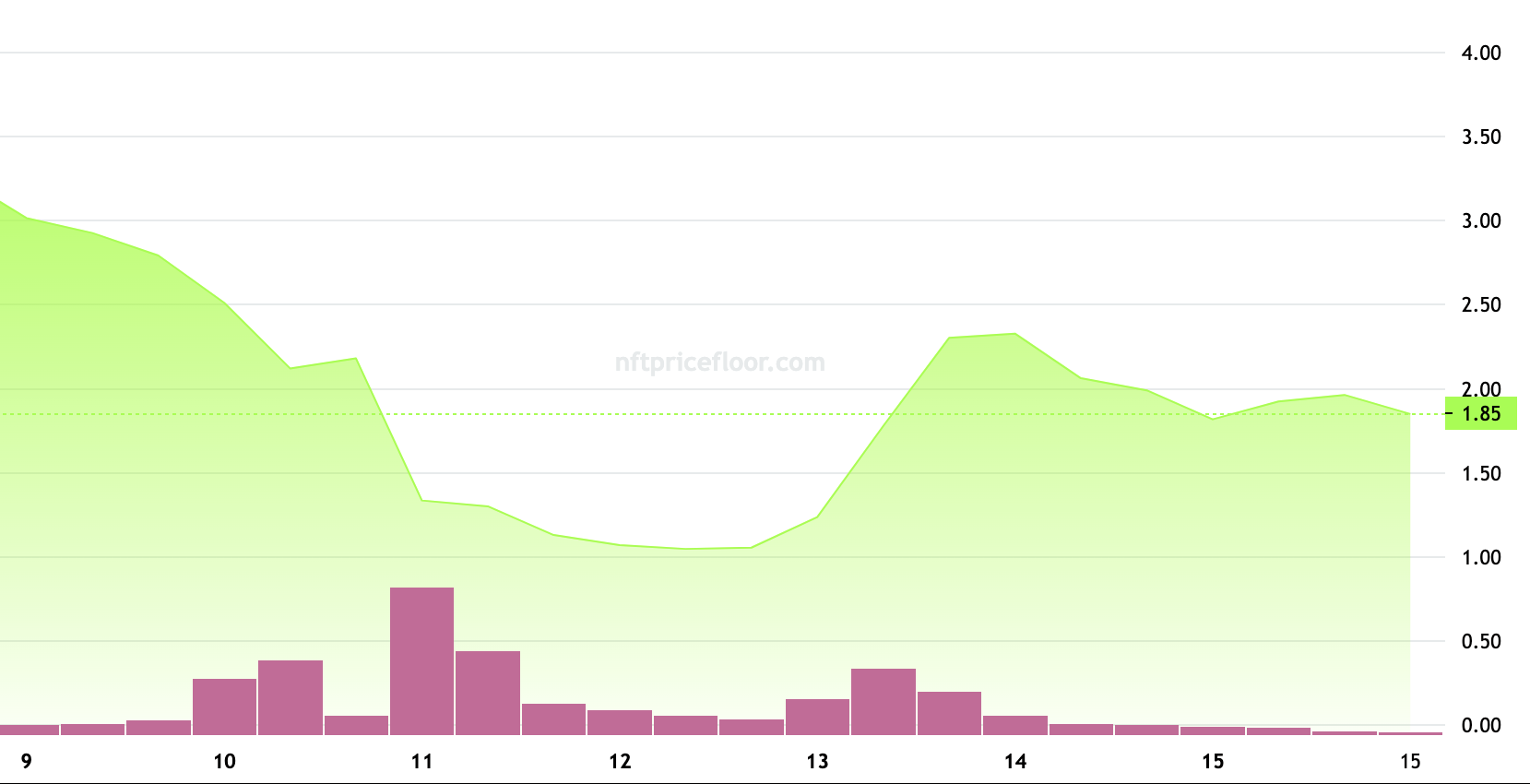 在披露前,BEANZ的交易价格为6.8 ETH,披露后这个价格稳步下降到目前的1.65 ETH。