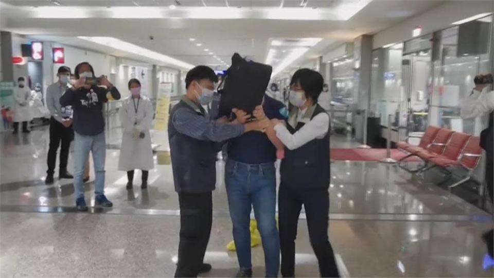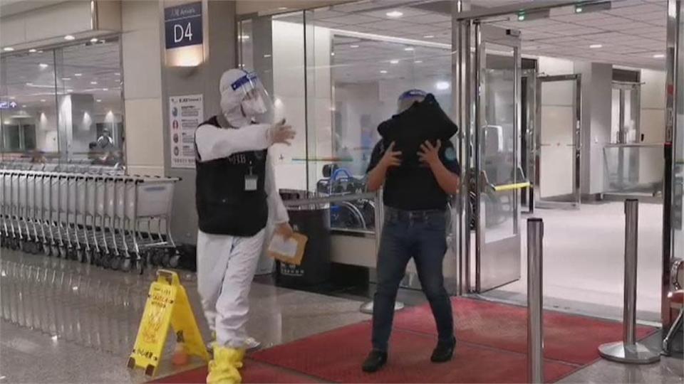 穿著蓝色POLO上衣,揹著黑色大包包,吸金集团台湾首脑张维智,在调查人员戒护下,坐上飞机遣返回台。