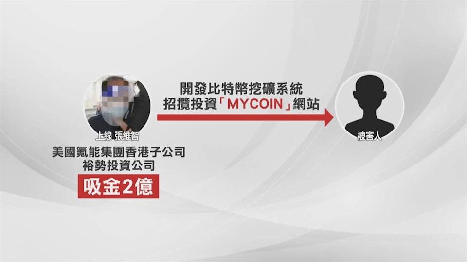 身为美国氪能集团香港子公司,裕势投资公司在台最上缐的张维智,2014年举办说明会,2015年潜逃出境,3年前入境泰国,5月19日遭到遣返,根据了解裕势投资上缐张维智,宣称能以专门技术,𫔭发比特币挖矿机系统,招揽民眾投资比特币交易平台「MYCOIN」网站,不法吸金高达两亿,集团成员还包括港星KK彭伟华。