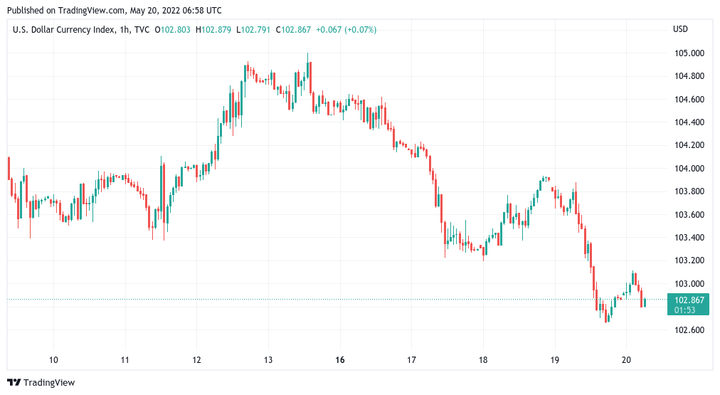 美元指数(DXY)1小时蜡烛图。资料来源:TradingView