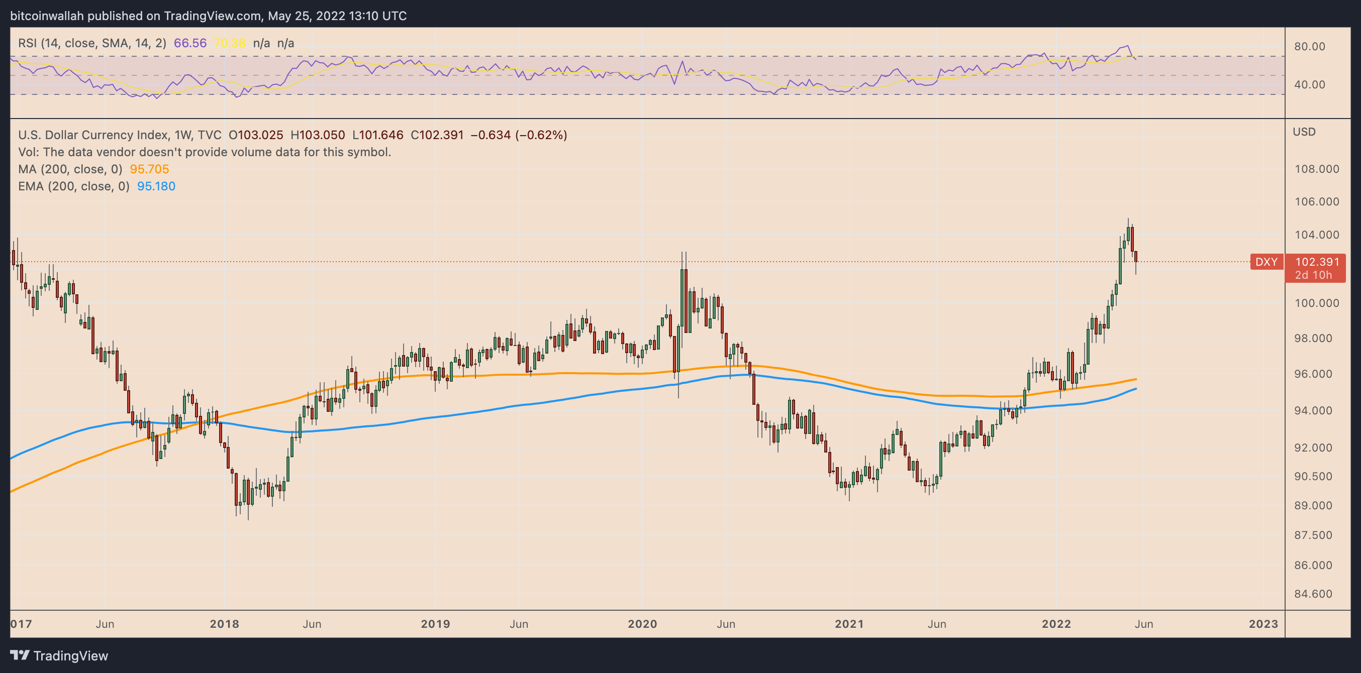 美元指数从20年高点回落,但DXY见顶会触发比特币的回升吗?