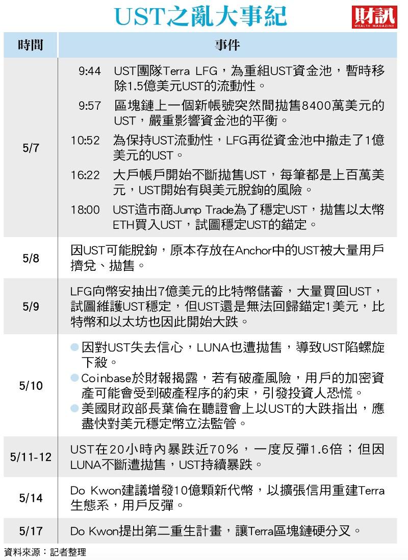 根据《财讯》报导,全世界主要央行实施紧缩货币以压抑通膨,不仅全球股债大跌,币市也爆发一场狙击𢧐,让第三大美元稳定币UST及其姊妹币LUNA一夕殒落。币圈末日将至了吗?