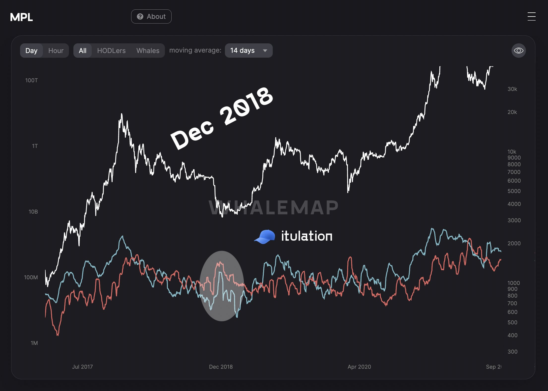 比特币移动损益(MPL) vs. BTC/USD注释图表 来源:Whalemap/推特