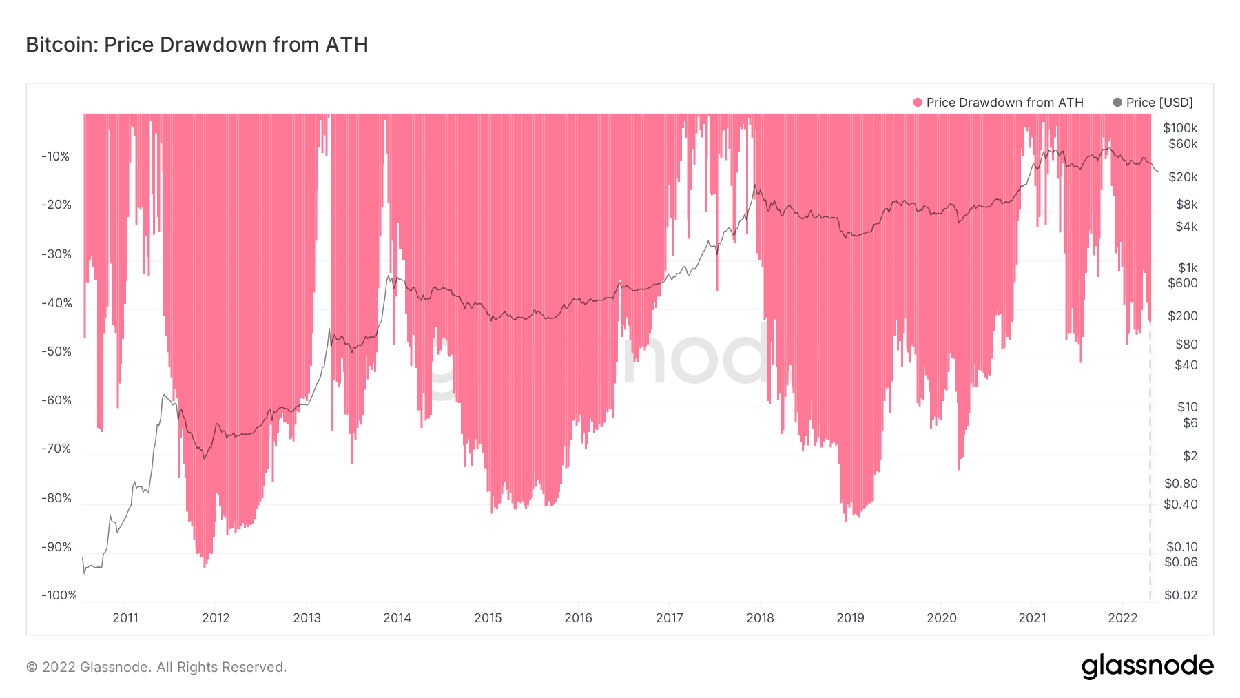 就像2018年和它的熊市一样,BTC/USD应该会在2022年的某个时候找到自己的宏观底部,如果计算以前从历史高点的跌幅,这可能在14000美元到21000美元之间。
