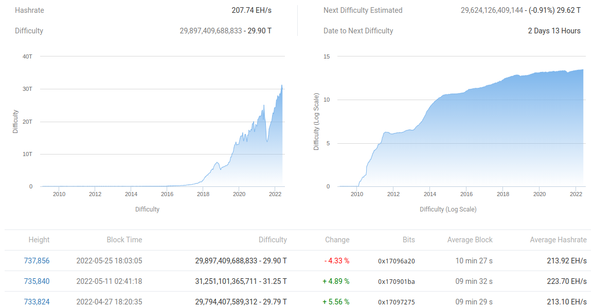 据估计,到目前为止,哈希率一直稳定在每秒200 exhash (EH/s)以上,这表明大部分矿工仍然活跃,并没有因为成本问题而减少活动。