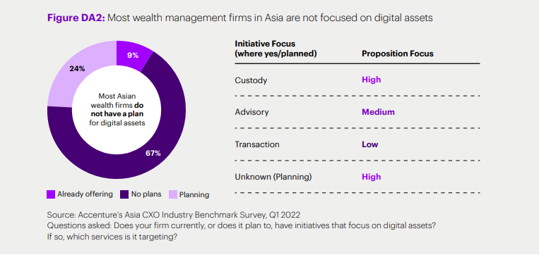 不过,埃森哲强调了财富管理公司进军数字资产领域的重要性,否则就有可能被甩在后面。
