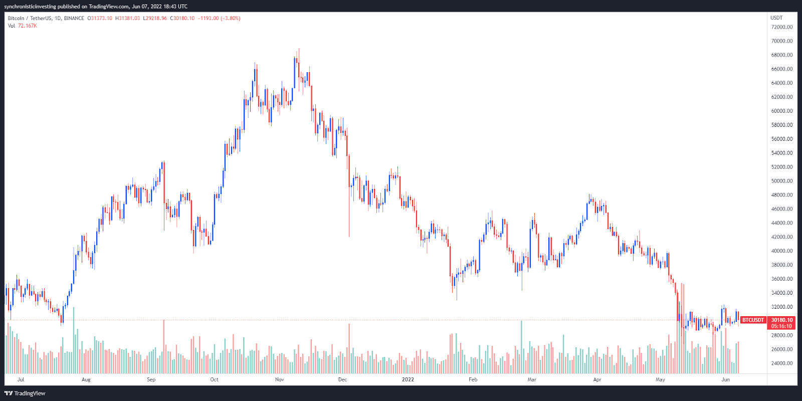 比特币(BTC)的短期价格走势一直由拉锯主导,在31000美元到32000美元的水平附近触发,6月6日的逆转引发了快速抛售,将价格压低到29200美元。