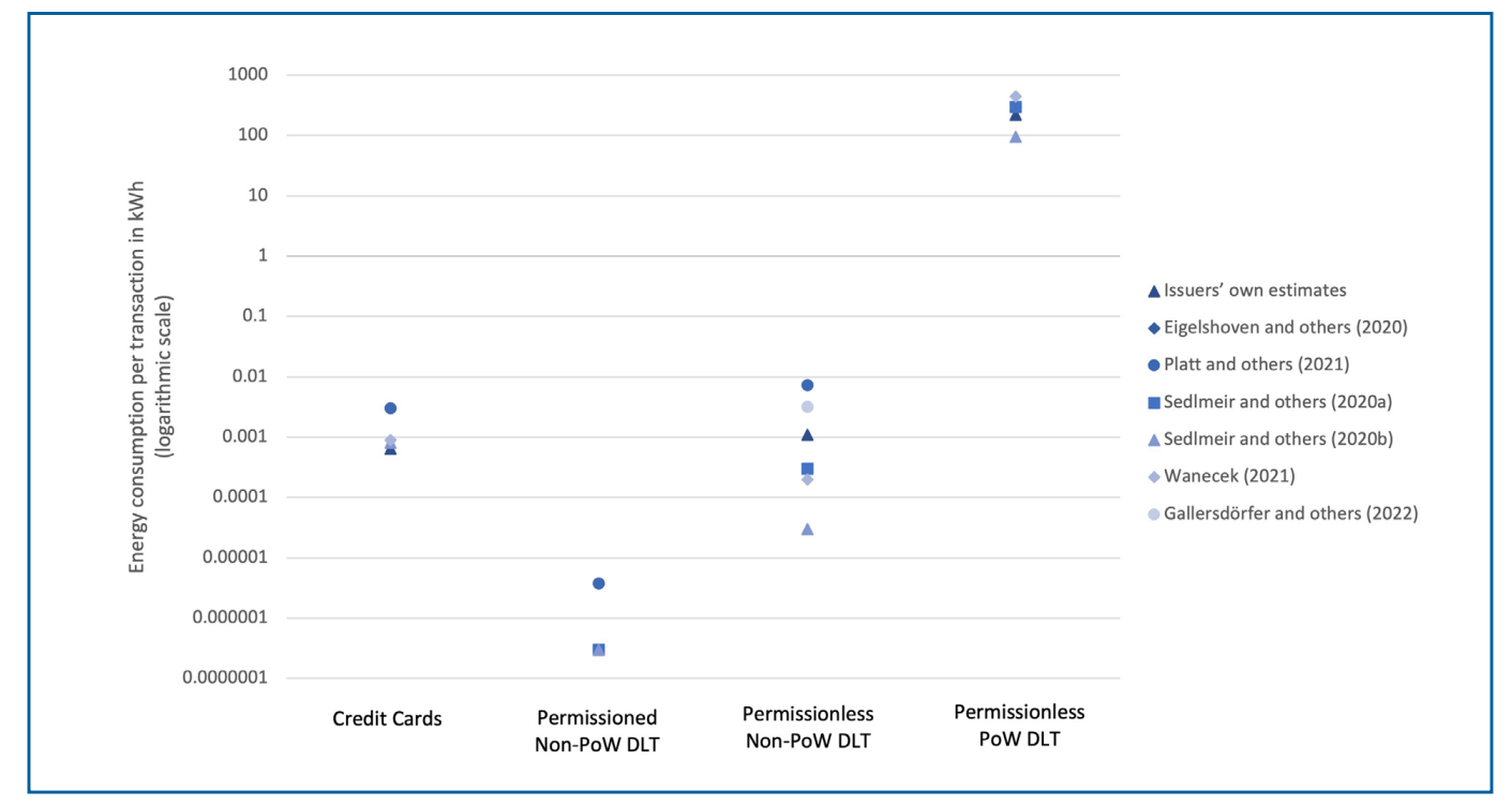 “相对于现有支付系统,非PoW、受许可的加密资产降低能源消耗的潜力来自于核心处理架构和用户支付方式的节能。”