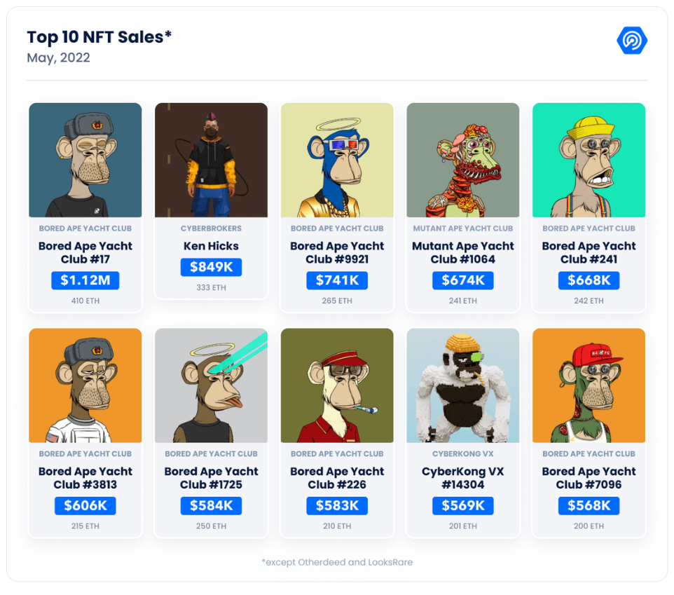 Otherside的交易量达到7.5亿美元,推动虚拟世界在5月份进入最佳月份(超过8.5亿美元)。