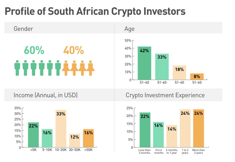与此同时,在人口统计方面,该加密货币交易所的研究发现,南非加密货币投资者主要是“男性和年轻一代”。据估计,60%的加密货币投资者是男性,而42%的投资者年龄在18至30岁之间。同时,该研究还揭示了南非的财富分配不平等,以及低收入者似乎将加密货币作为解决财富分配不平等的工具。