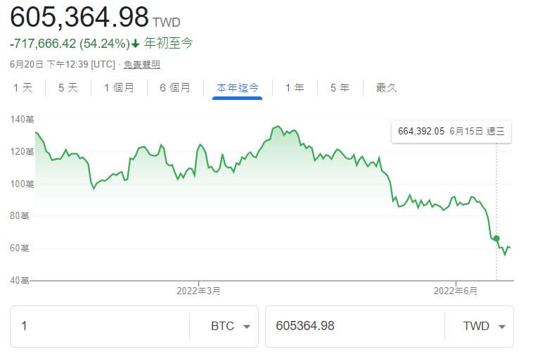 因为币圈惨遭血洗,加密货币纷纷重挫,以比特币来说,跌幅最夸张,失守两万美元大关,跟去年11月,创下的历史高点比,崩跌幅度就超过70%。加密货币现在总市值,大约九千亿美元,在七个月内蒸发掉,一个苹果的市值,2.1兆美元不少富豪的身家,跟著比特币一起大贬值,这也让不少投资人的脸都绿了,因为真的损失惨重。