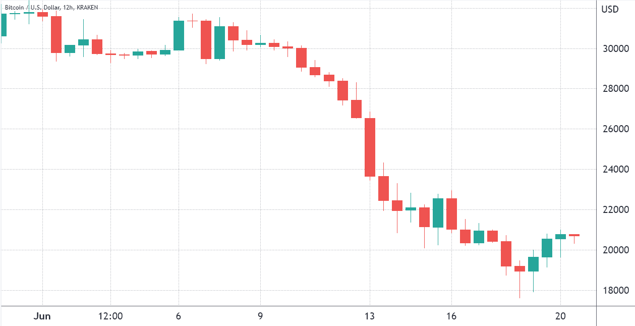 一些指标表明,比特币可能已在 6 月 18 日触底,尤其是在 20,000 美元的支撑位增强后。另一方面,市场分析师Mike Alfred明确表示,在他看来,“比特币对大型玩家的清算还没有结束。他们将把它降低到一个对像Celsius这样曝光过度的玩家造成最大伤害的水平。”