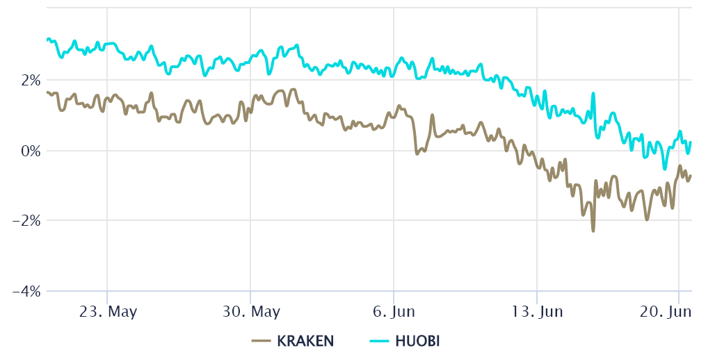 比特币的期货溢价未能突破 5% 的中性门槛,而比特币价格在 6 月 11 日之前一直坚守在 29,000 美元的支撑位。每当该指标减弱或变为负数时,这就是一个令人担忧的看跌红色信号,这种情况被称为现货溢价。
