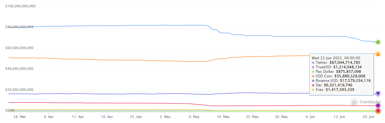 Tether一直试图增强人们对其稳定币的信心,包括在6月13日表示,加密货币市场上持续发生的涉及Terra和Celsius的灾难不会对其储备造成任何影响。尽管如此,投资者似乎正在向USDC迁移。