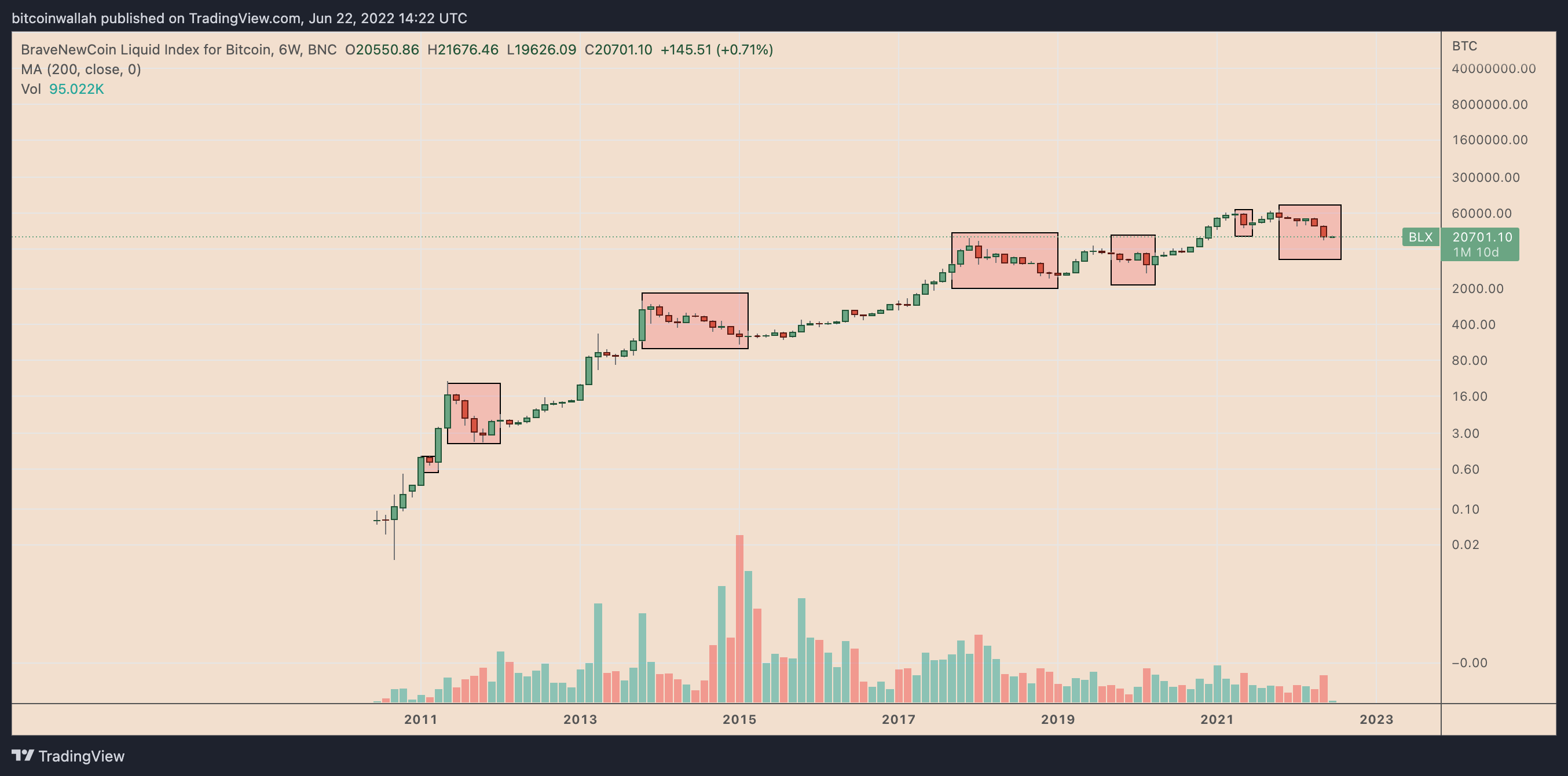 BravenewCoin Liquid Index显示了比特币自2011年以来的熊市 来源:TradingView