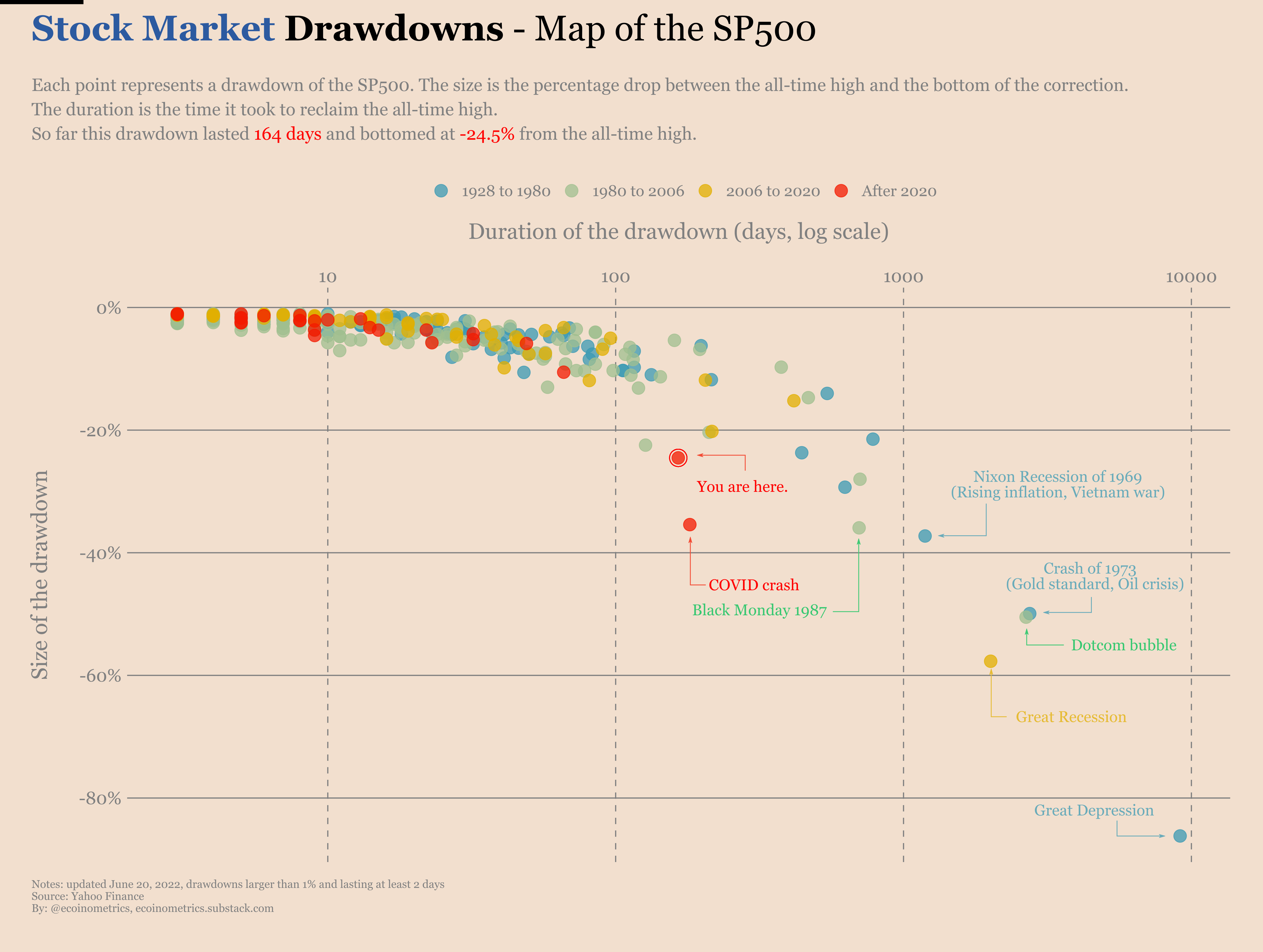 标准普尔500指数的历史下跌情况 来源:Ecoinometrics