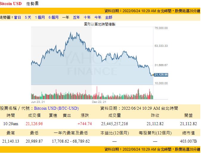 比特币去(2011)年11月曾创下一枚6万8928.9美元的历史最高价,大牛走势吸引无数韩国年轻人抢进。但受美国联準会急剧升息,投资人对经济衰退疑虑大起,从大户到奈米户急逃相互踩踏下,6月18日比特币一度跌破1.8万美元大关,等于暴跌了七成五,创下2020年12月以来最低。不只是比特币,乙太坊、狗狗币等许多加密货币同样跌幅不轻。