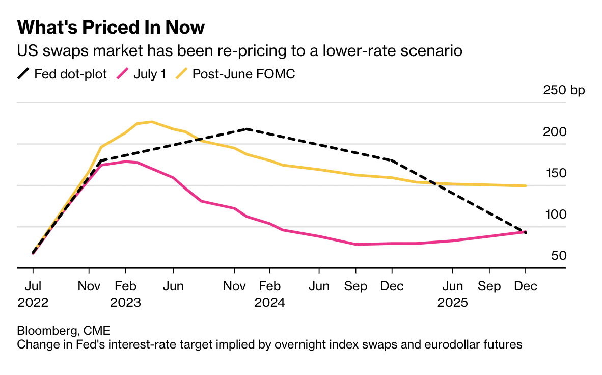 值得注意的是,交易员预计美联储将在7月份加息75个基点。他们还押注美联储在今年年底前不会将利率从目前的1.25%-1.5%区间上调至3.3%以上。