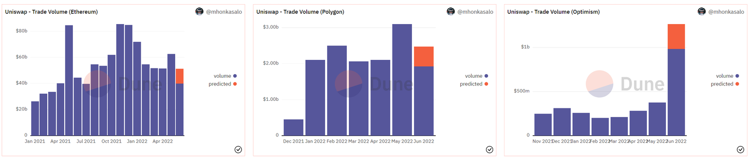 不利的一面是,Uniswap 最近取得的进展存在相当多的负面影响。由于缺乏价值捕获和 Uniswap Labs 的活动,UNI代币的经济状况被认为很糟糕,并不能为代币持有者带来价值。