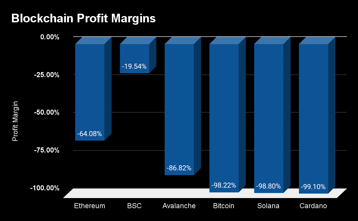 有趣的是,现在没有区块链是真正盈利的——甚至没有接近盈利。