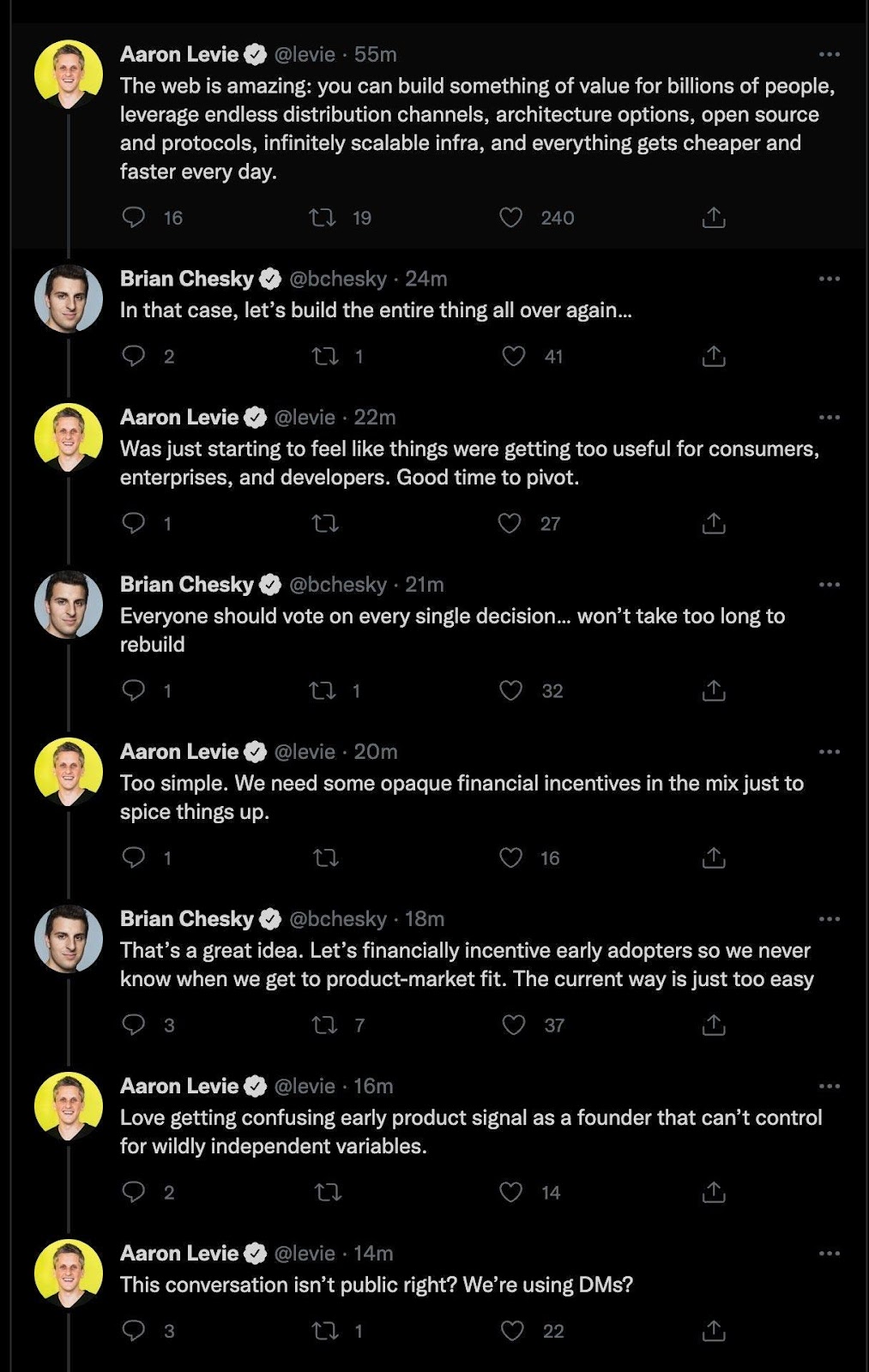 几周前,加密项目和量化对冲基金Numerai的创始人Richard Craib在Blockworks的播客节目中明确表示(23:00 - 25:30),如果我们生活在一个监管机构允许我们通过ICO筹集资金的世界,并简单地表示“是的,我们是在为一项业务筹集资金”,情况会怎么样?不幸的是,这意味着它是一种证券,政府更愿意让我们为一个艺术项目或一个奇怪的治理代币筹集资金。对我来说,这种坦率的看法令人耳目一新,尤其是来自一个在加密领域工作了相当一段时间、对技术和金融方面都有很好的理解的人。