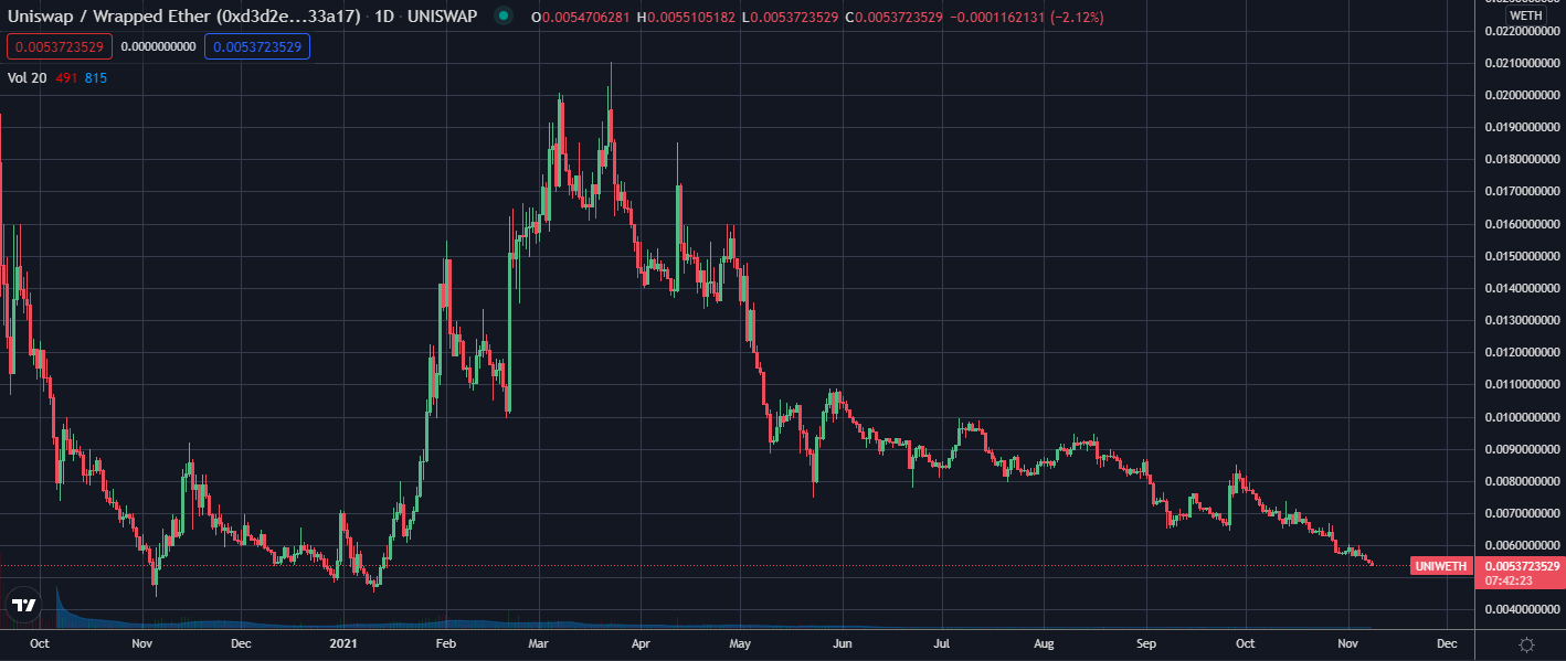 如果我拥有苹果10%的股票,即使股票下跌了50%,这仍然意味着我拥有公司10%的股份以及与此相关的一切。如果我拥有10%的UNI总供给,代币下跌50%,我实际上拥有什么?(现在,它是对未来价值的承诺)。