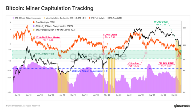 区块链分析公司Glassnode 7月11日发布的最新链上周报解释说,市场投降已经持续了约一个月,其他几个信号表明比特币价格底部形成。