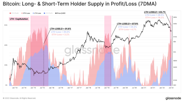 然而,Glassnode的分析师写道,熊市“仍然需要一定的持续时间”,因为长期持有者(LTH)往往对比特币作为一种技术抱有更大的信心,越来越多的长期持有者在承担最大的未实现损失。
