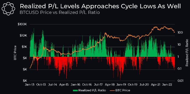 据Delphi Digital称,比特币供应的利润百分比和比特币的已实现盈亏比正在接近之前熊市的水平,但在触及本轮熊市周期的低点之前,这两个指标都还有“一些空间”。