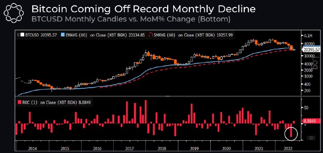 BTC/USD月度蜡烛图vs. 环比百分比变化 来源:Delphi Digital