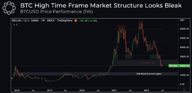 在这种背景下,BTC现在试图在2017年周期高点20000美元附近形成一个局部底部,“这是高时间框架比特币图表上最后一个明确的结构性支撑位。”