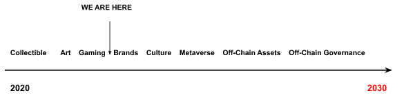 NFT交易额达数百亿美元,知名人士和品牌纷纷进入这个舞台,利用这个新机会,向他们的观众表明他们年轻、时髦、精通技术。我对这方面比较悲观,因为它需要类似DAO的治理,这需要解决多个问题,这个主题本身值得写一篇完整的文章。
