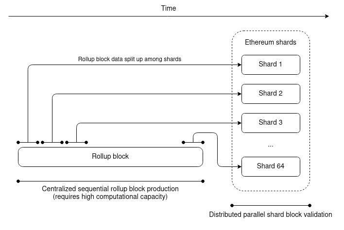 当数据分片部署成功后,Rollup可以将自己处理的所有区块数据并行发送到不同的分片进行验证。
