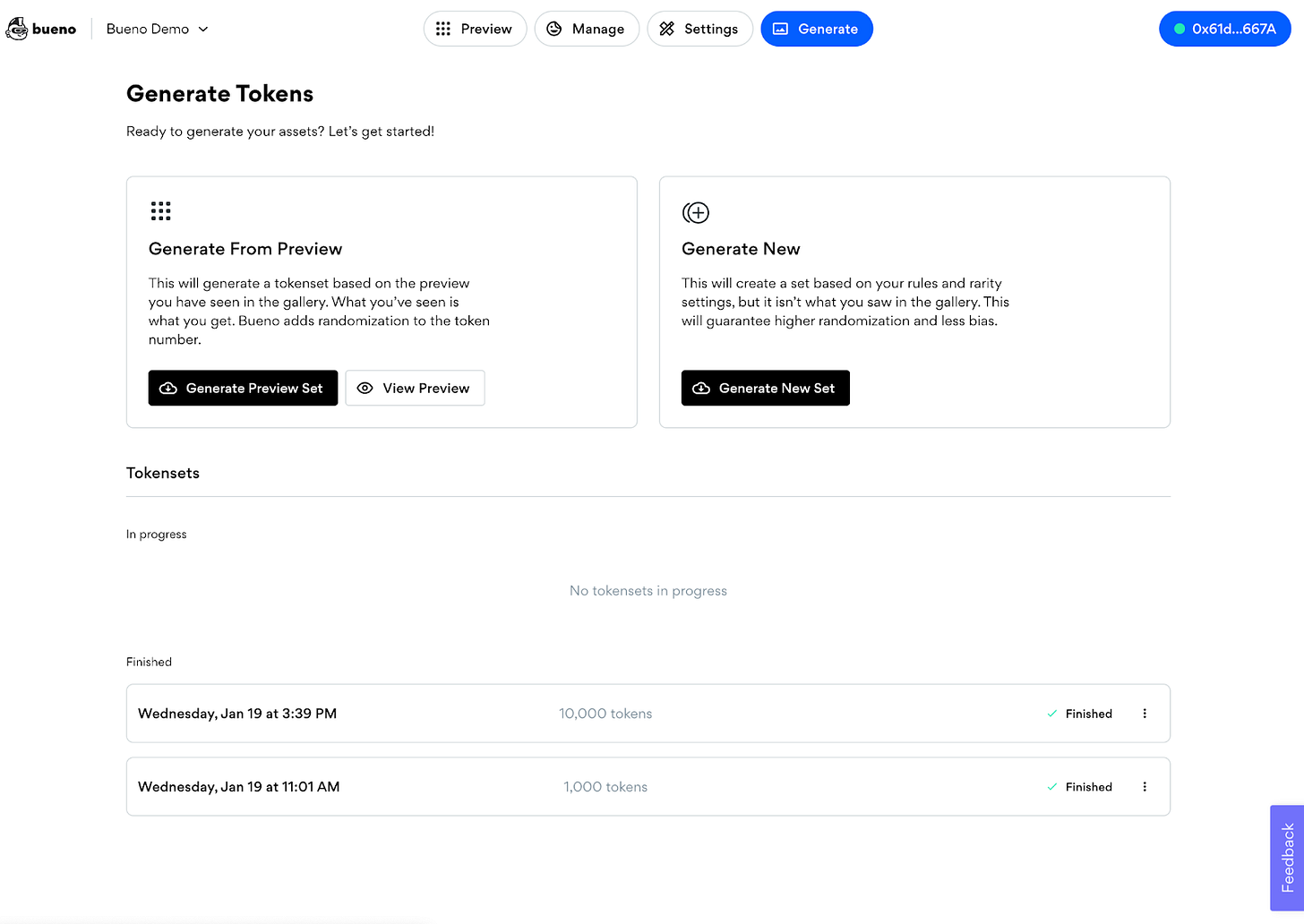 现在,Bueno同时提供两个旗舰的无代码产品,分别是NFT艺术生成器和智能合约部署器。