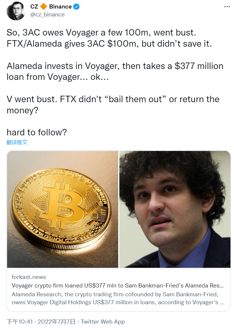 6月中旬,加密货币借贷平台Celsius宣布暂停取款,资金池出现问题;7月8日,借给三箭资本约6.66亿美元加密资产的Voyager Digital也在美国申请了破产保护。除此之外,包括FTX、BitMEX、Binance等大量机构都有三箭资本的坏𧹔,就差去办公室门口拉横幅了。由此带来的极端恐慌情绪,让大批无关“加密银行”都急忙出来“否认三连”撇清关系,安抚用户。